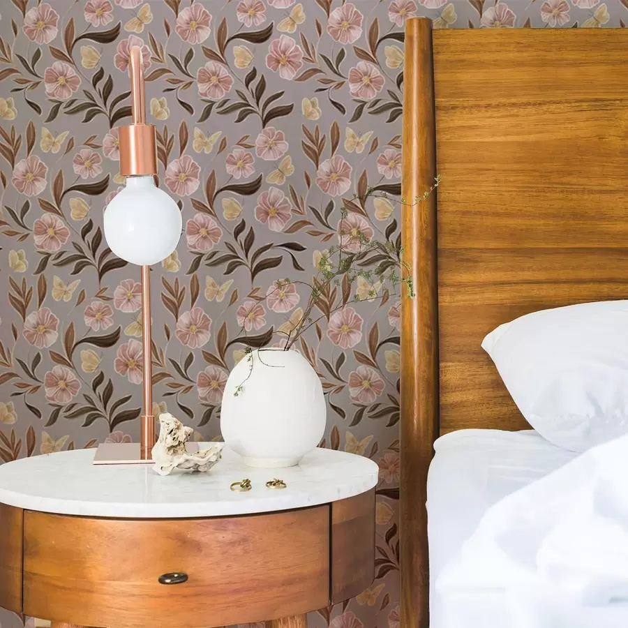 Delicadas ramas en flor sobre fondo crema, colores pastel
