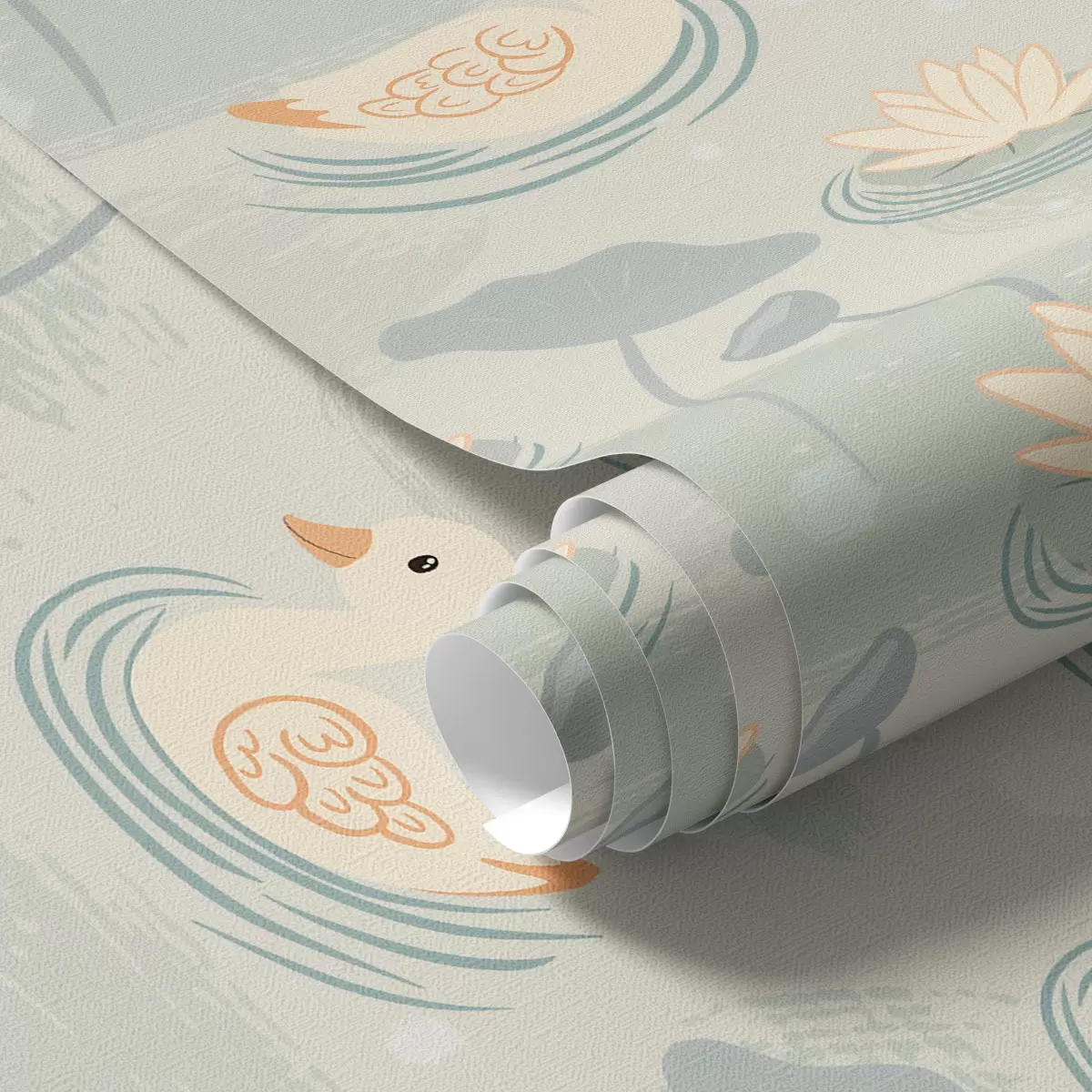 Papel tapiz Patitos en un estanque con lotos Nr. a00079