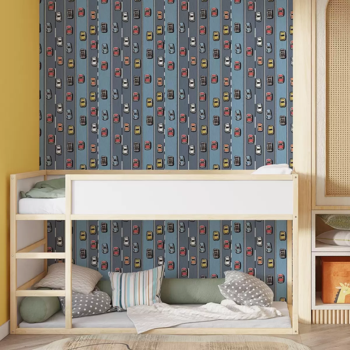 Se puede limpiar suavemente con una esponja suave. Los murales de pared con recubrimiento de barniz pueden limpiarse con agua.