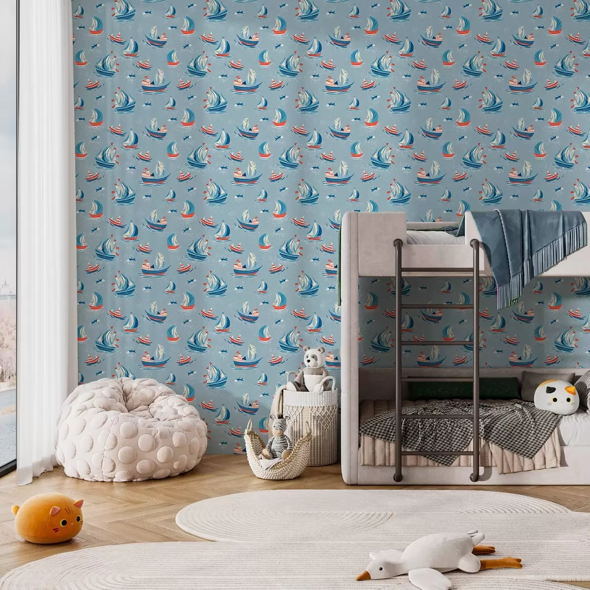 Papel tapiz Barcos sobre fondo azul Nr. a00126