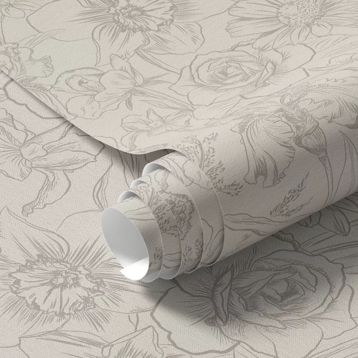 Papel tapiz Flores de contorno sobre fondo crema, delicado motivo floral Nr. a00218