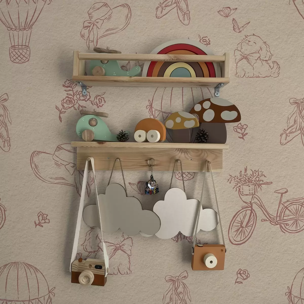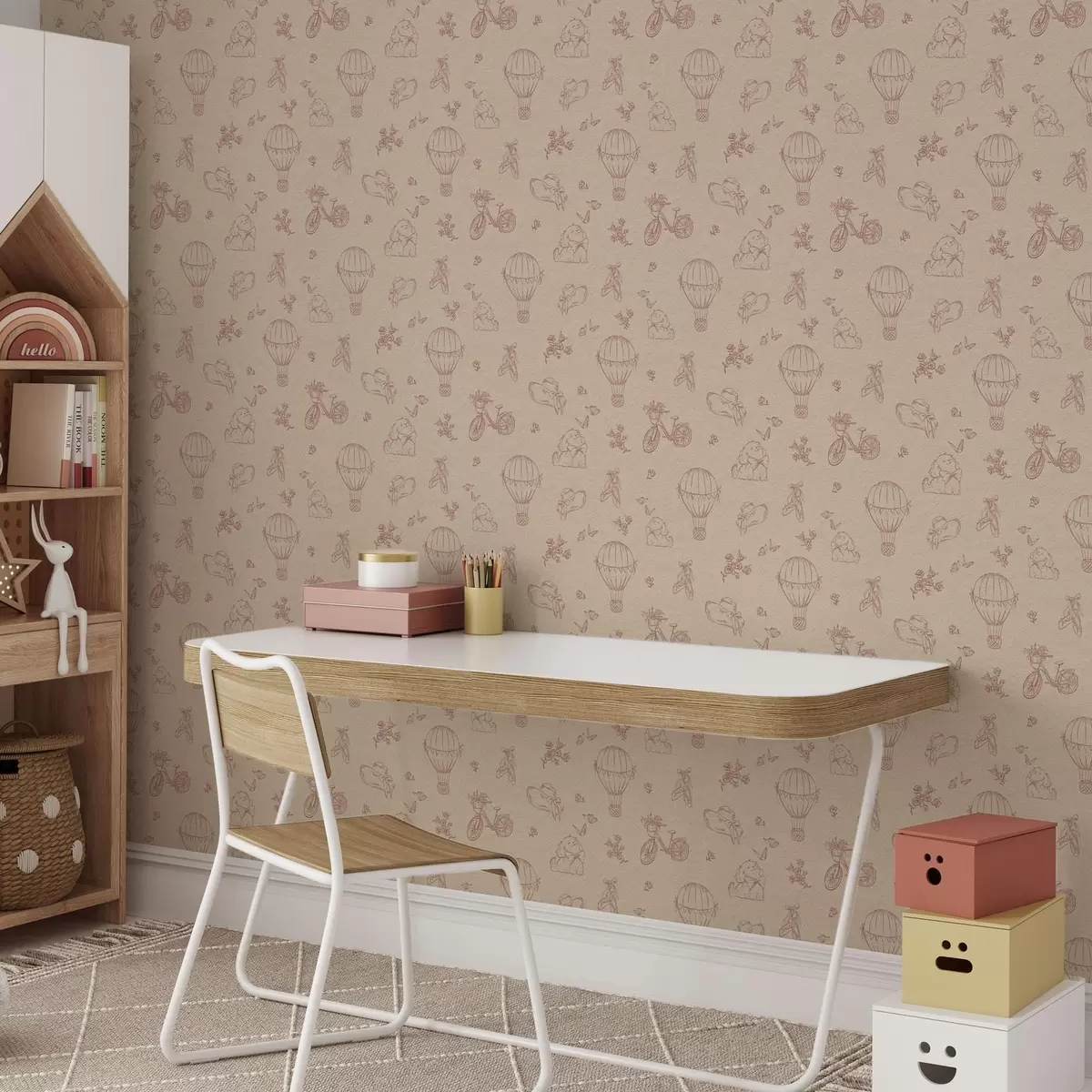 Papel tapiz Motivo rosa bebé con perro, flores y aire Nr. a00279