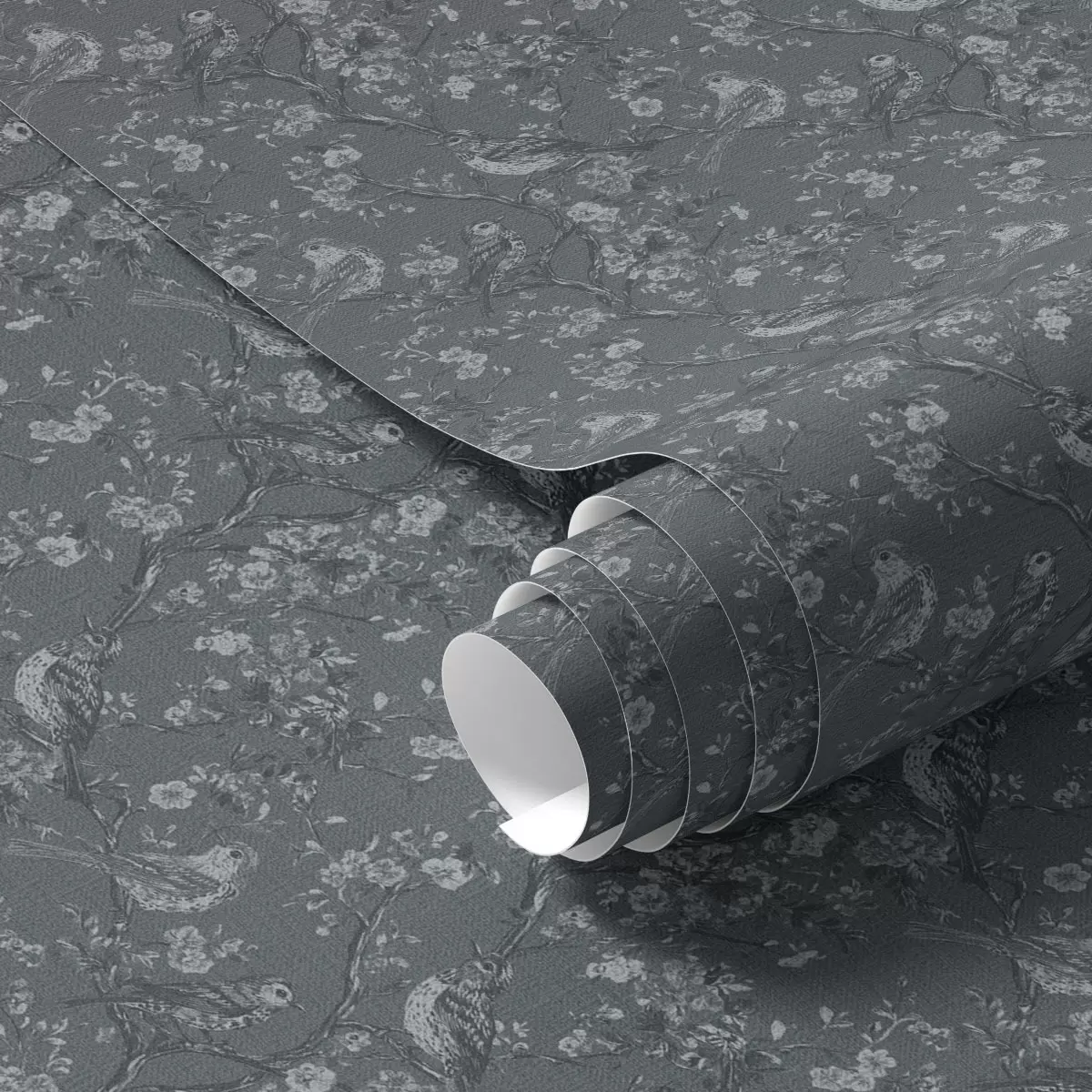 Papel tapiz Estampado oscuro con pájaros y flores, estilo clásico Nr. a00281