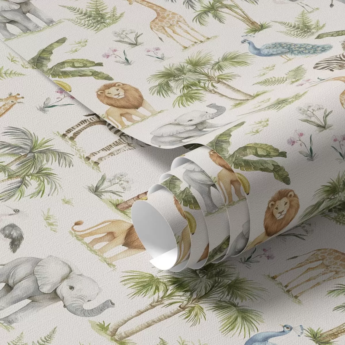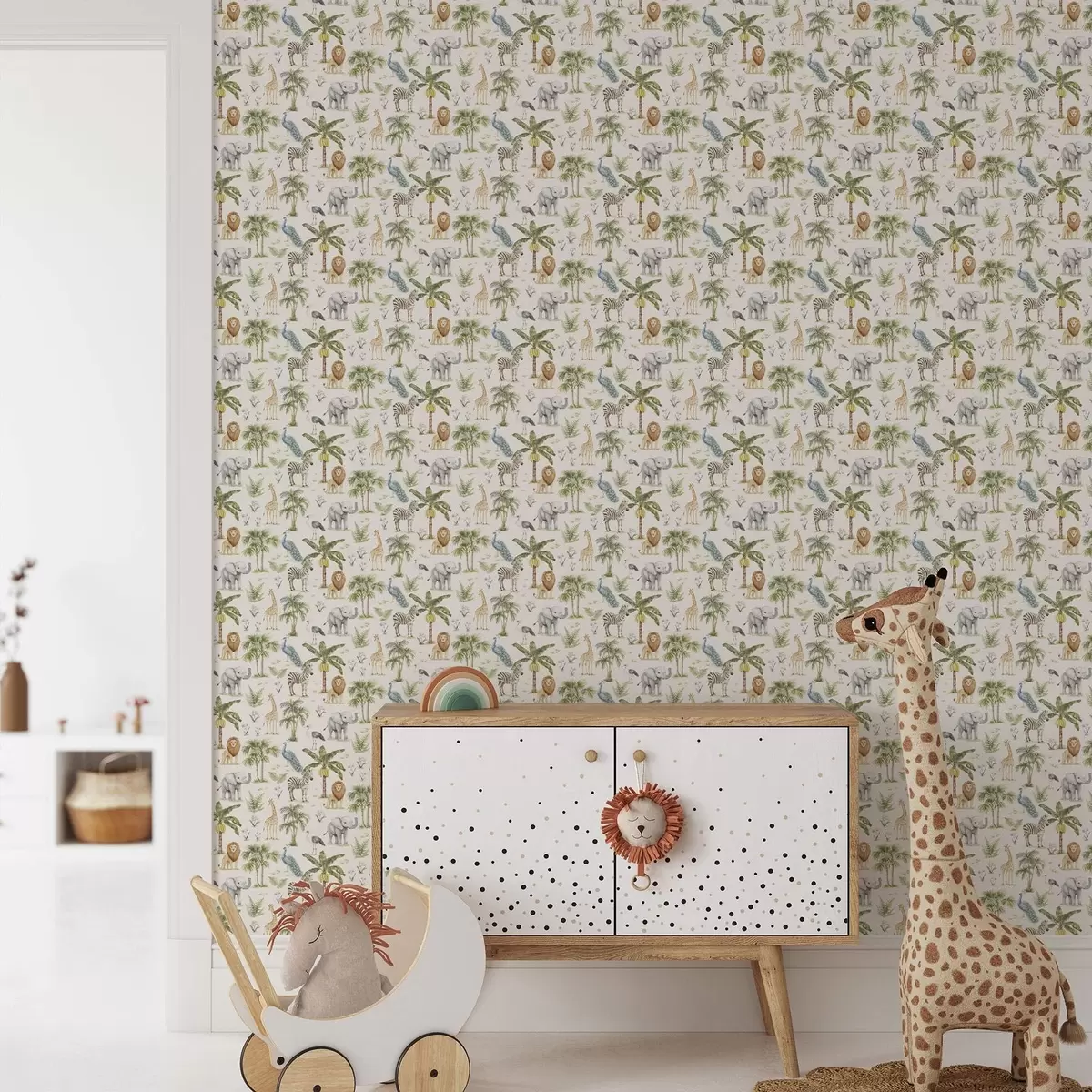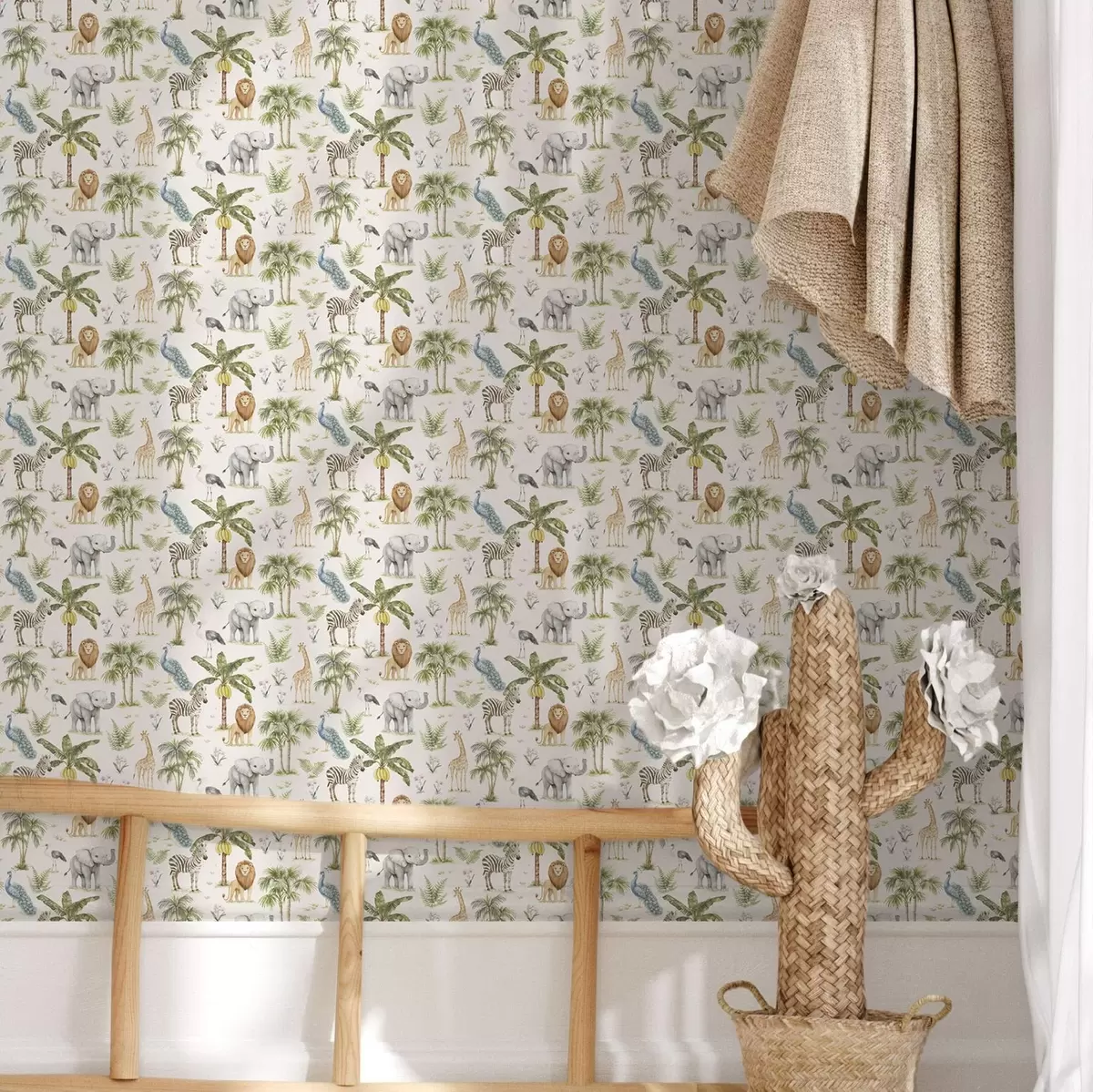 Papel tapiz Animales africanos entre palmeras y plantas exóticas Nr. a00321