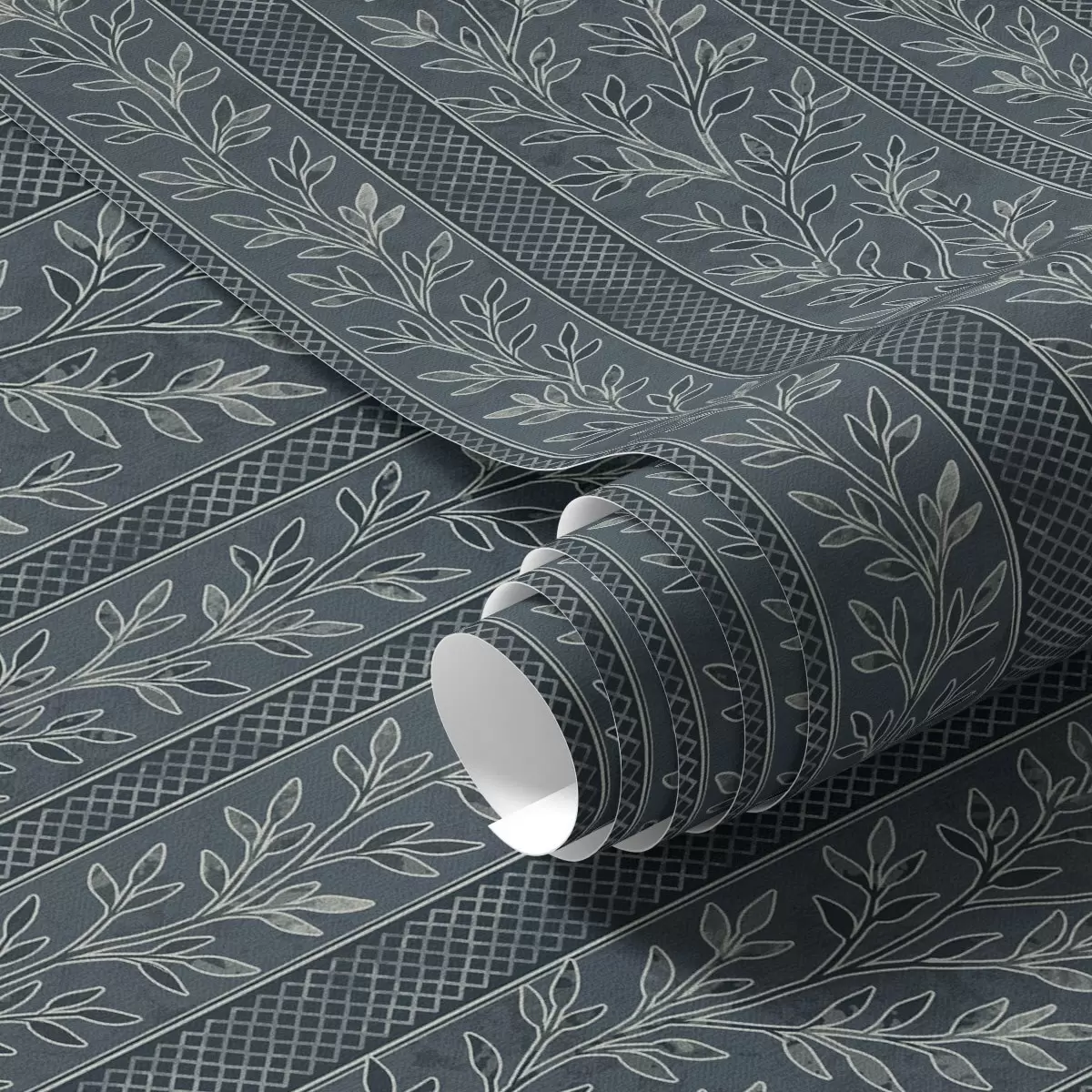 Papel tapiz Motivo de rayas con ramitas sobre fondo azul Nr. a00425