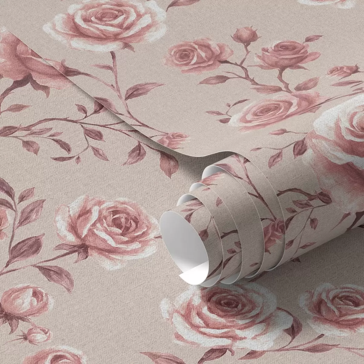 Papel tapiz Rosas en polvo sobre fondo beige — estampado vintage Nr. a00497