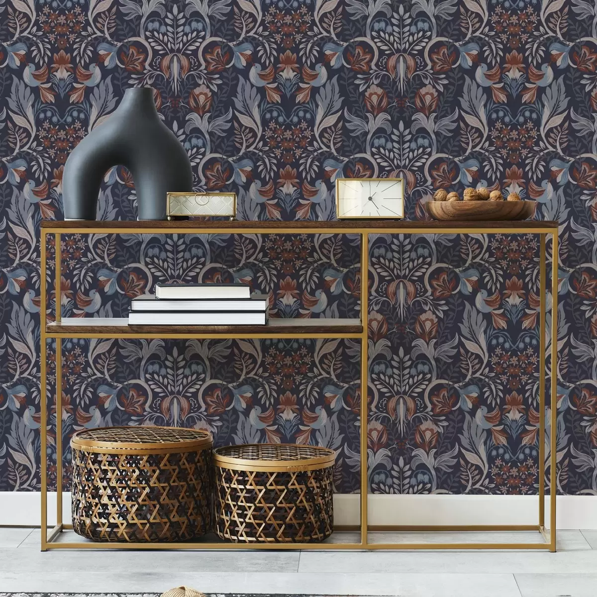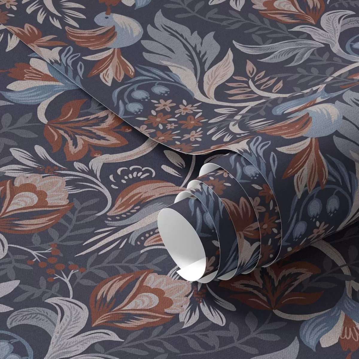 Papel tapiz Flores y pájaros populares sobre fondo azul oscuro Nr. a00502