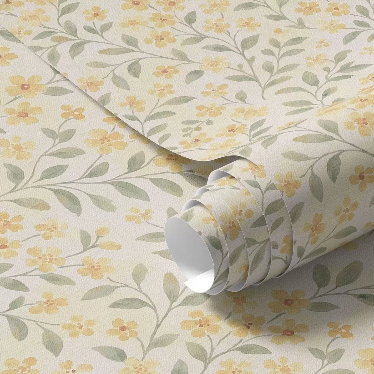 Papel tapiz Flores amarillas pintadas con acuarela sobre un fondo claro Nr. a00570