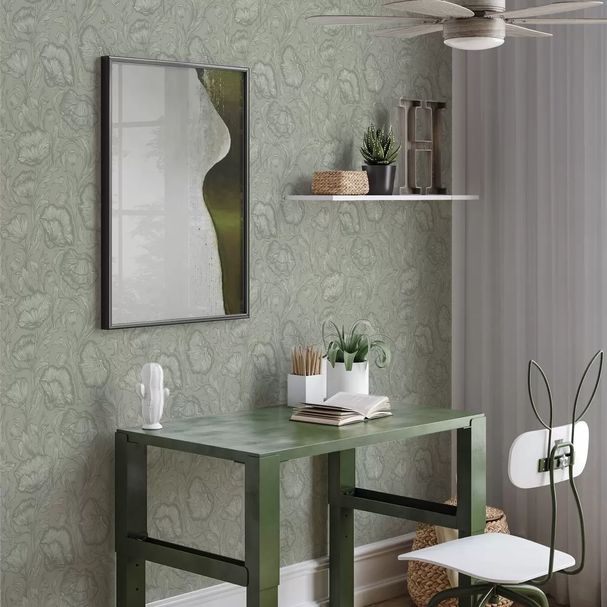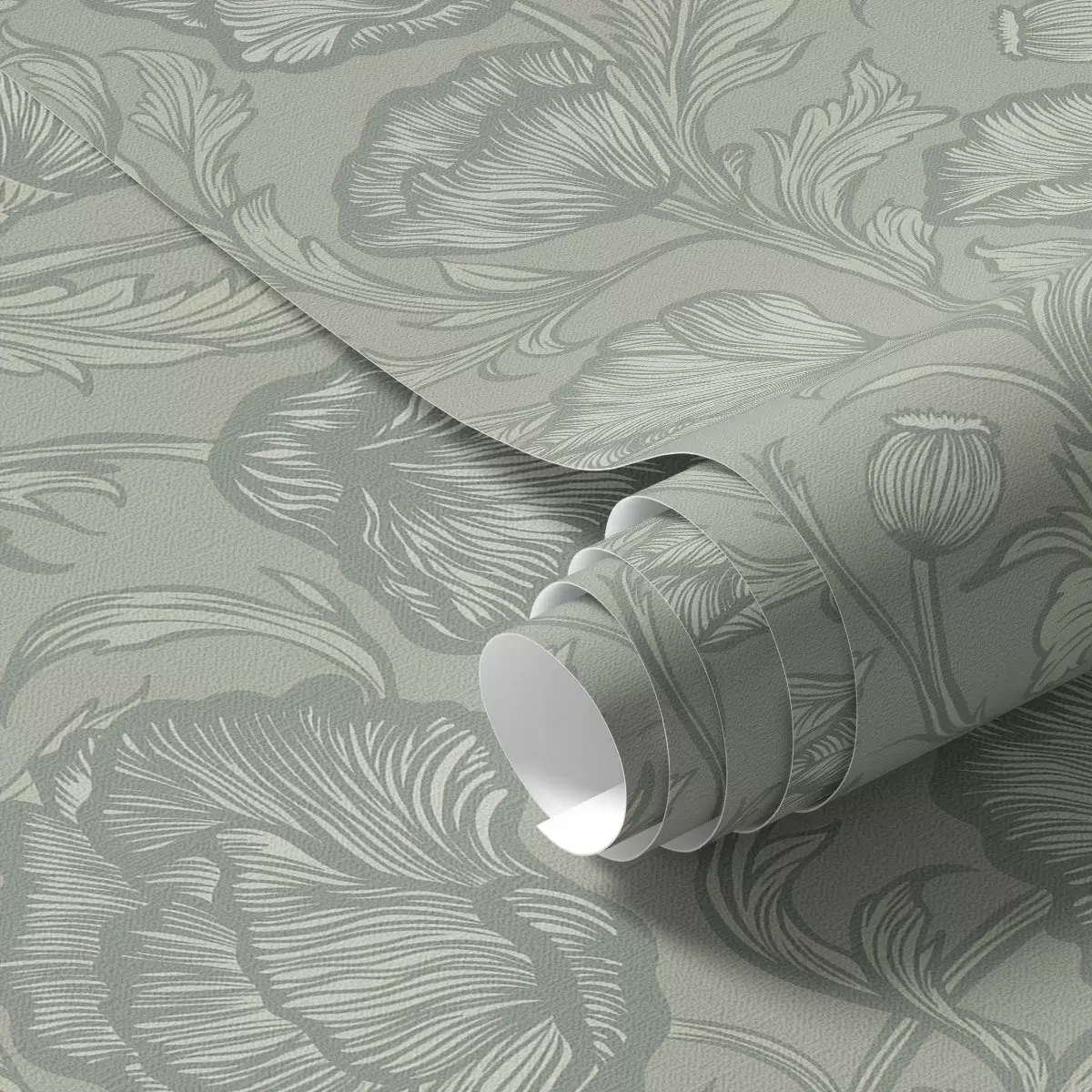Papel tapiz Amapolas en línea sobre un fondo gris verdoso Nr. a00572v1