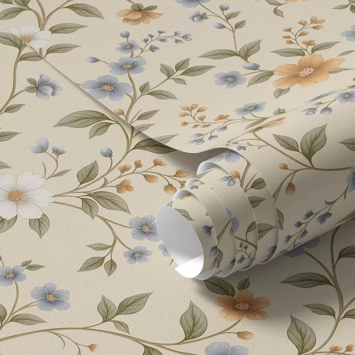 Papel tapiz Ramas florales con flores azules y melocotón Nr. a00575