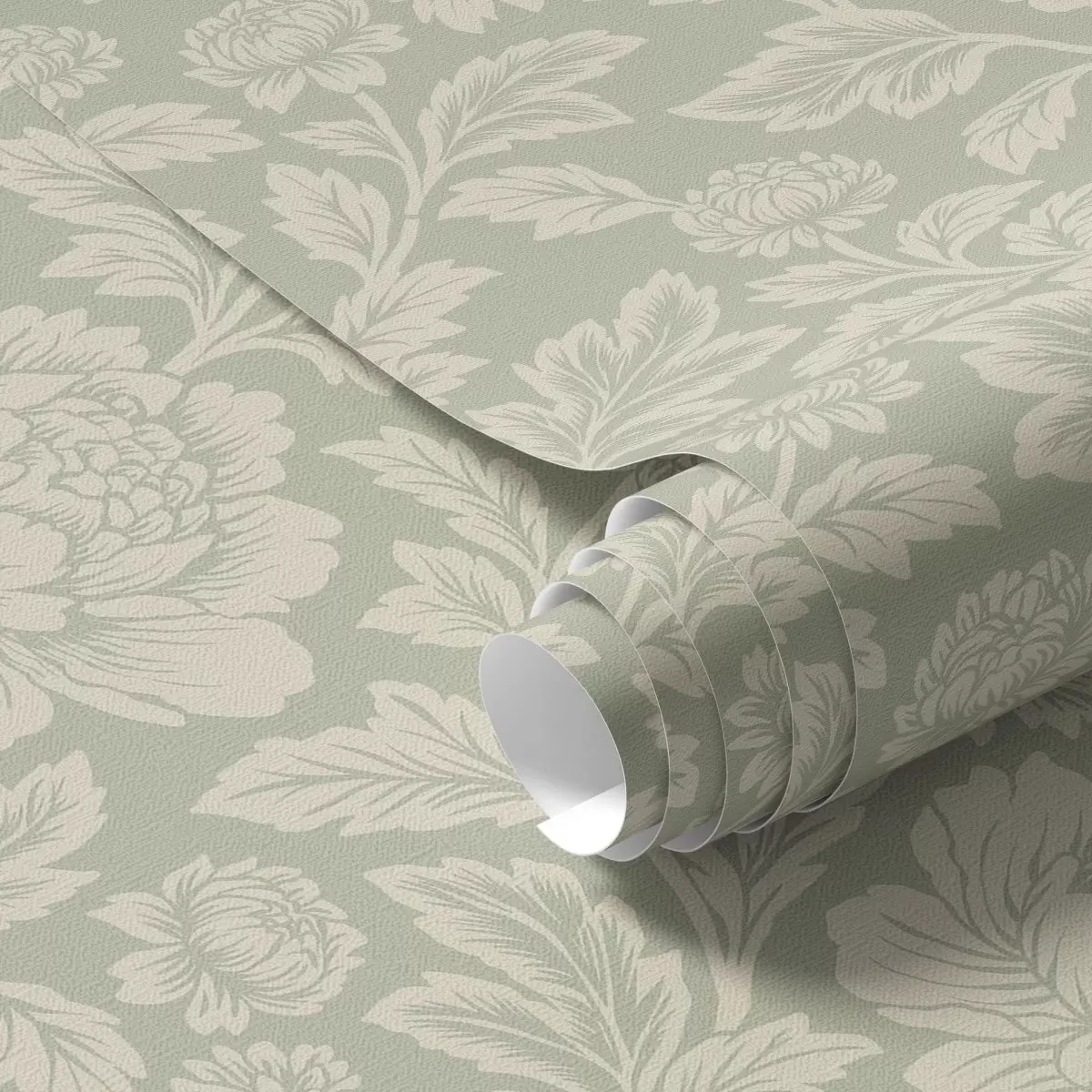 Papel tapiz Grandes peonías en línea sobre un fondo salvia Nr. a00582