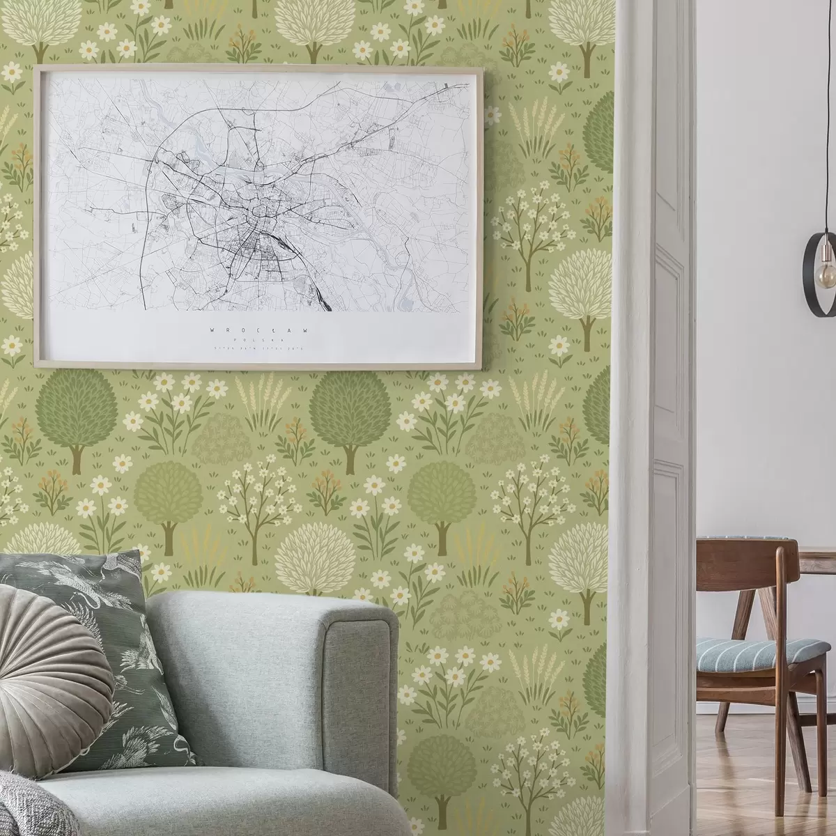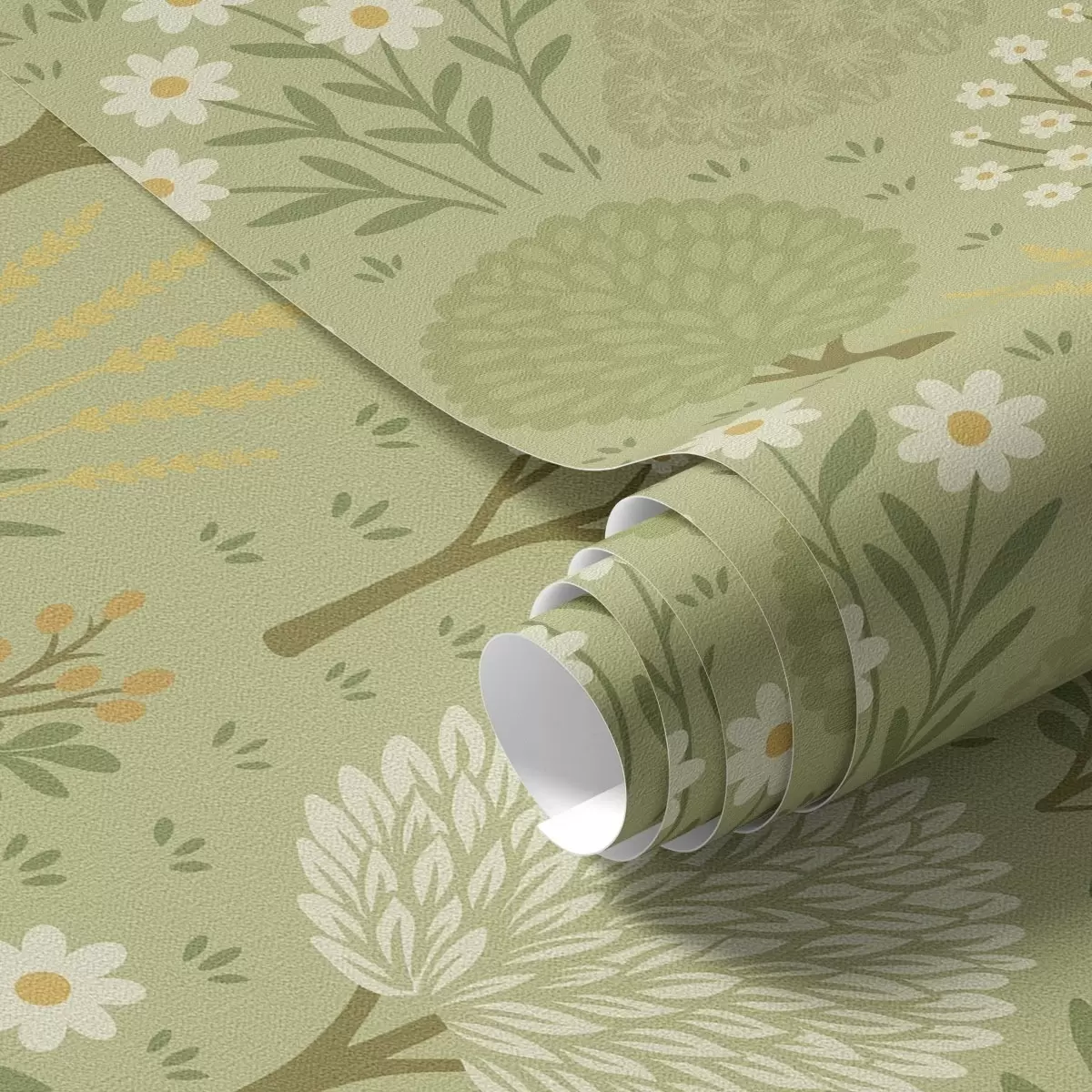 Papel tapiz Jardín ecológico para niños: árboles, flores y trigo Nr. a00586