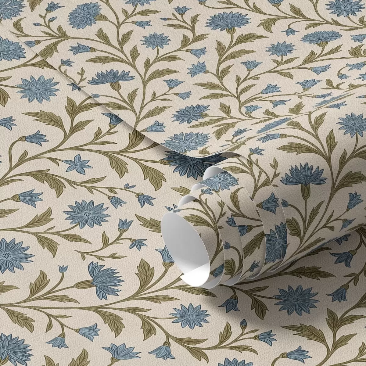 Papel tapiz Acianos y brotes sobre fondo beige Nr. a00588