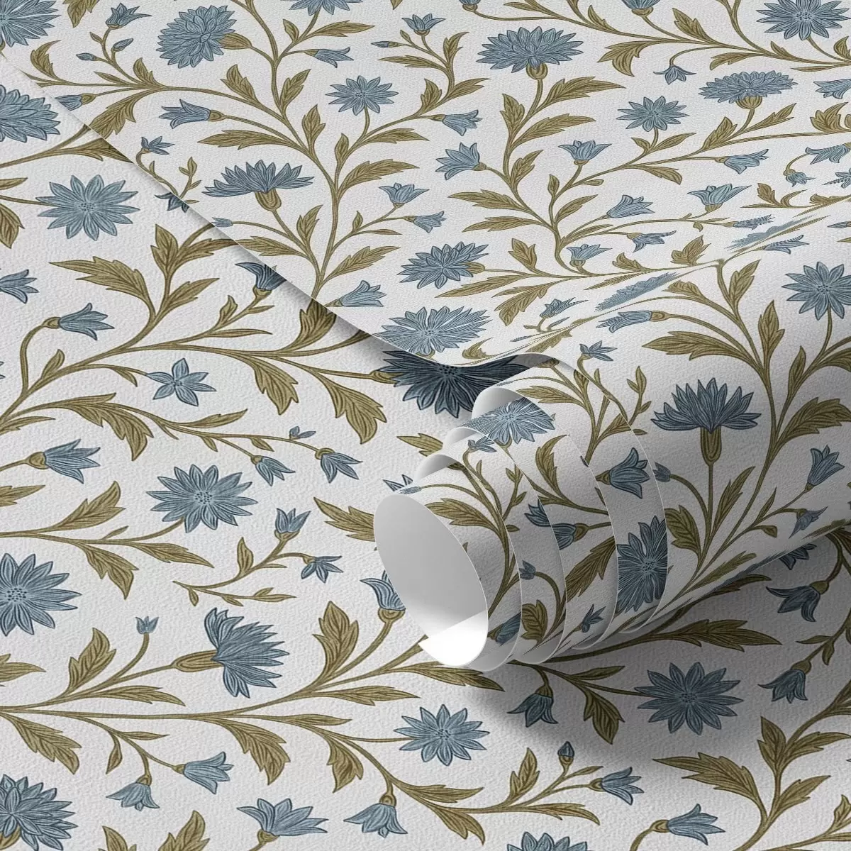 Papel tapiz Acianos y brotes sobre fondo blanco Nr. a00588v1