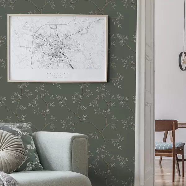 Papel tapiz Delicadas ramas frondosas sobre un fondo verde oscuro Nr. a00597