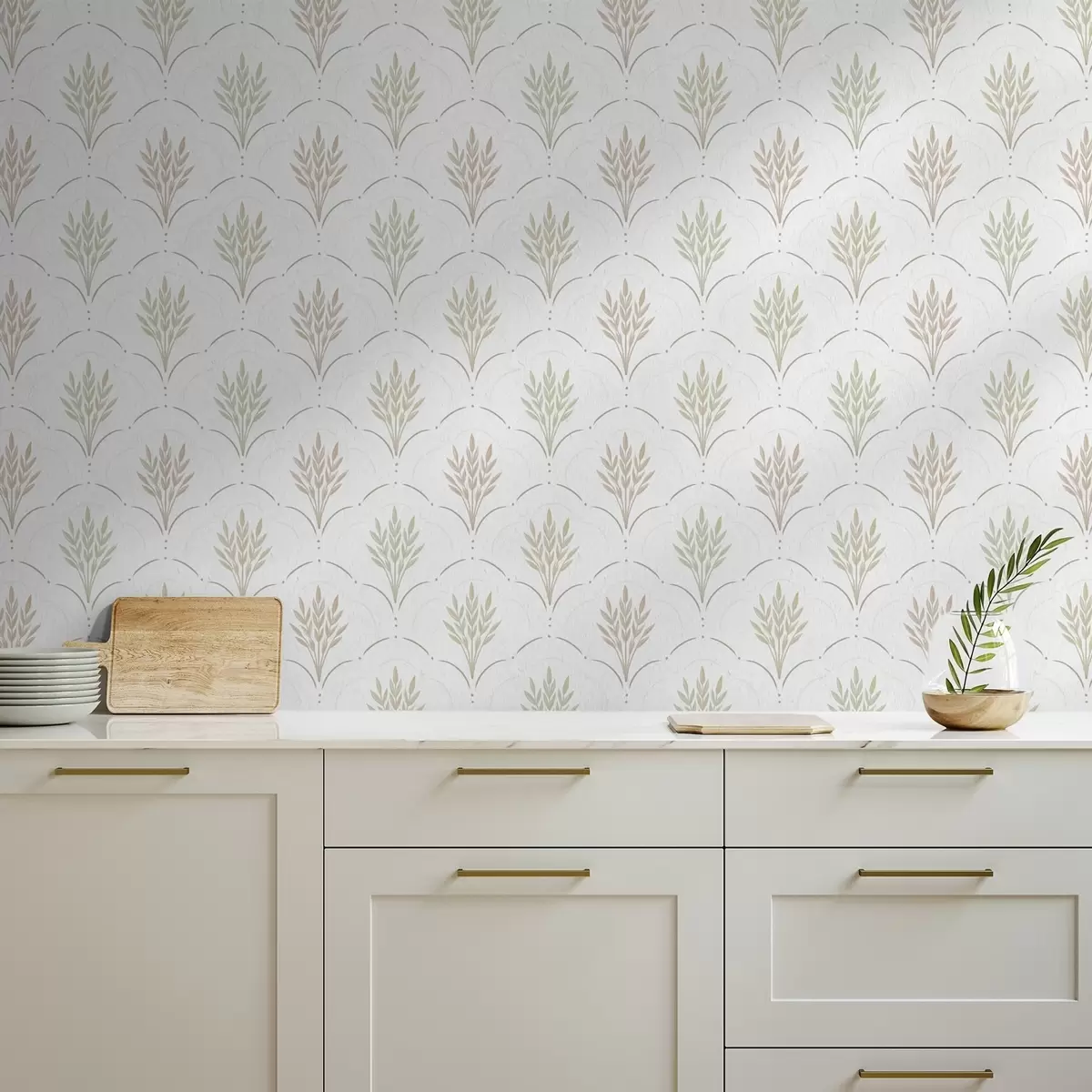 Papel tapiz Trigo en un adorno arqueado, suaves tonos pastel sobre fondo blanco Nr. a00607v1