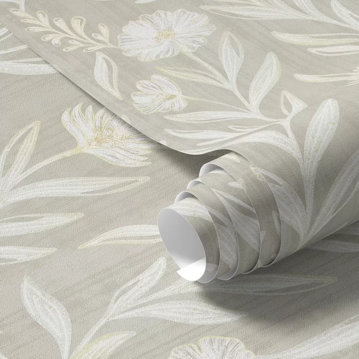 Papel tapiz Hierbas y flores claras sobre fondo beige, líneas esquemáticas Nr. a00618