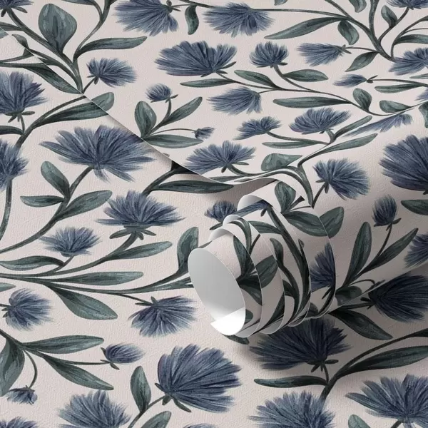 Papel tapiz Flores silvestres en una paleta de colores azul verdosos sobre un fondo crema Nr. a00623v2