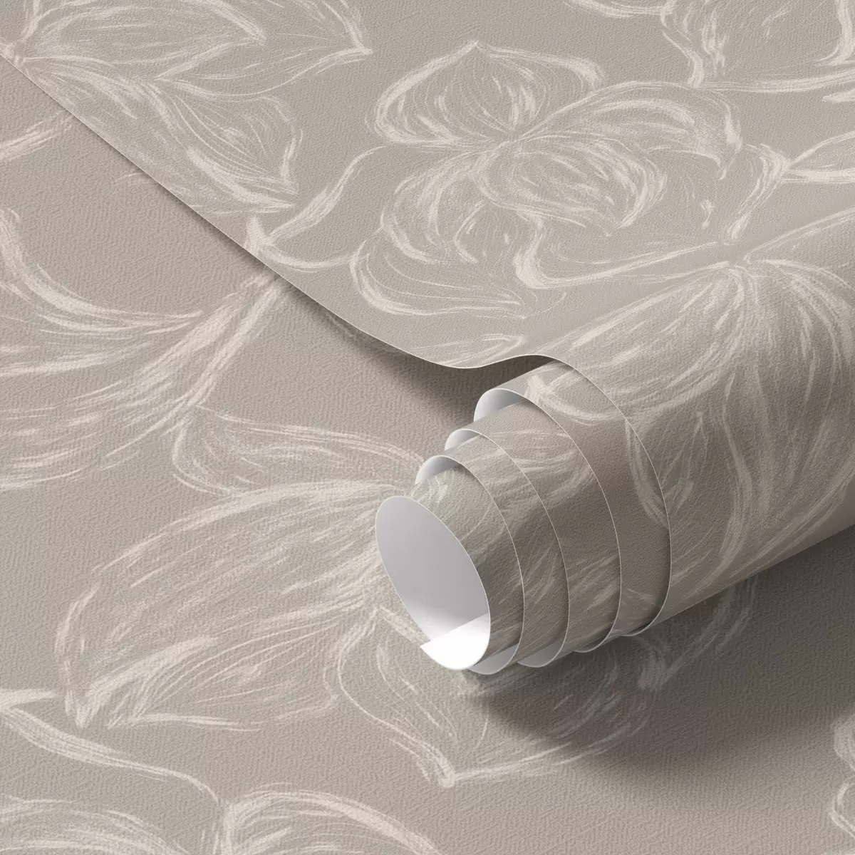 Papel tapiz Flores con contorno en crema sobre un fondo marrón grisáceo cálido Nr. a00625v2