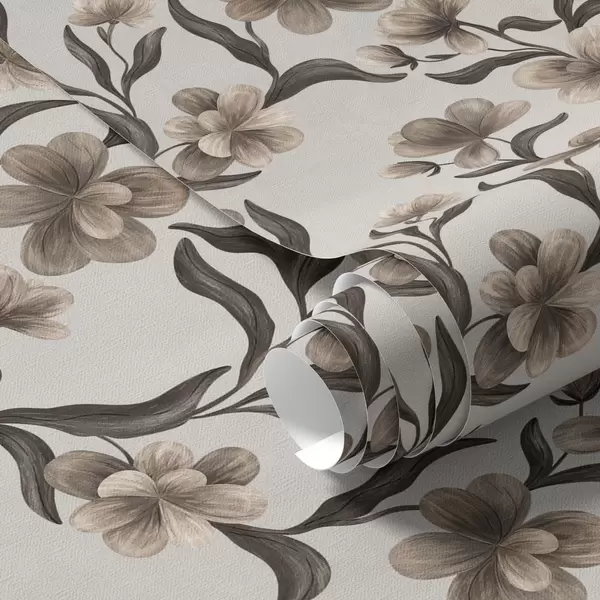 Papel tapiz Flores beige y ramas oscuras sobre fondo gris claro Nr. a00626v1