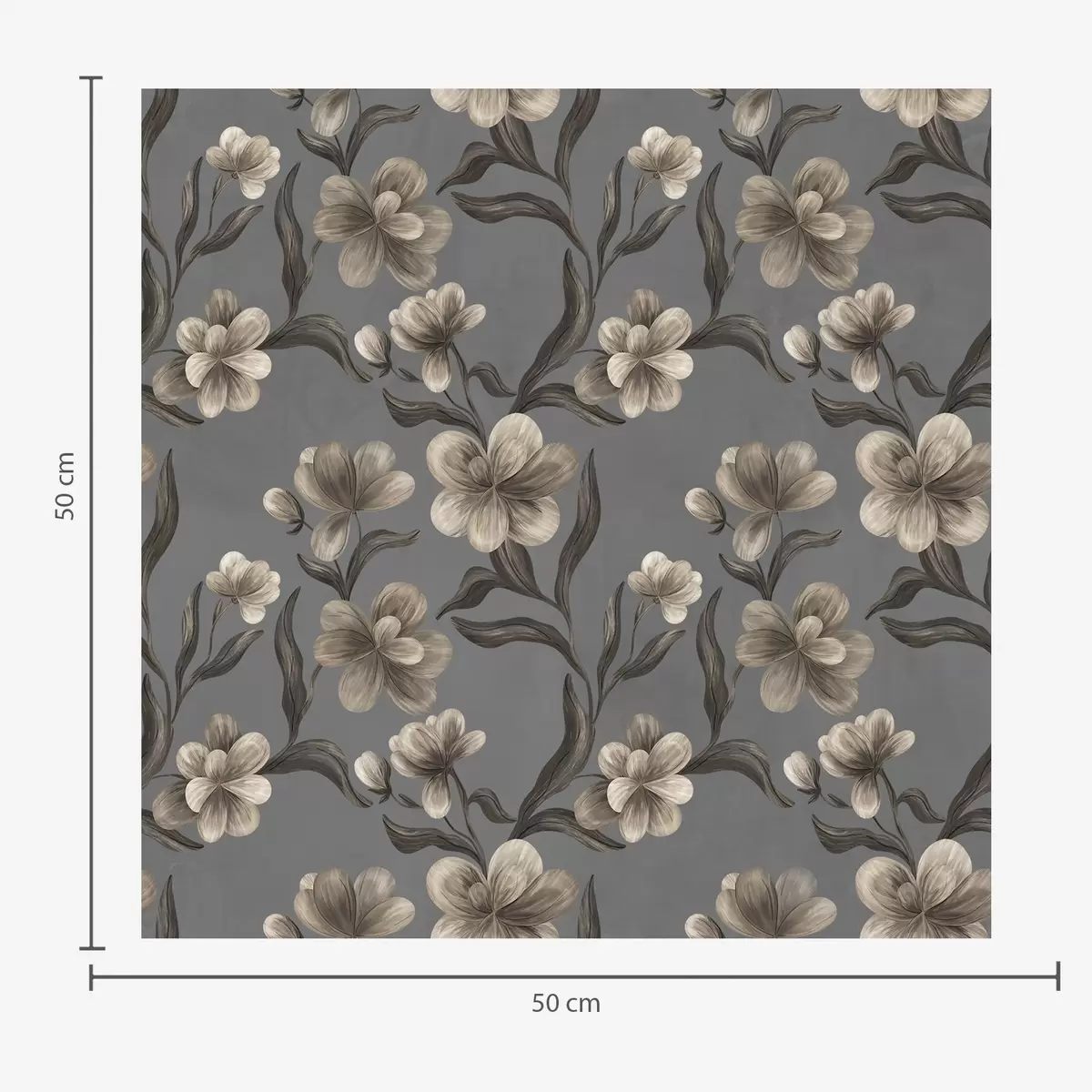 Papel tapiz Flores beige sobre fondo gris grafito Nr. a00626v4