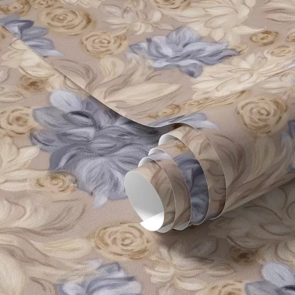 Papel tapiz Crema exuberante y flores azules en una paleta de colores pastel Nr. a00634