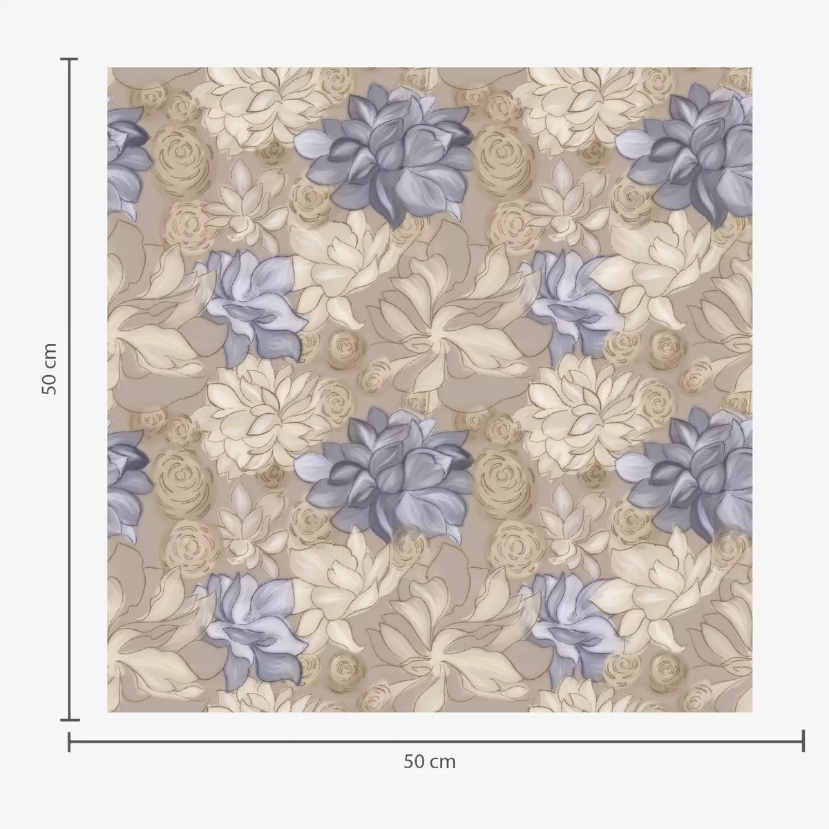 Papel tapiz Flores de color crema y azul sobre un fondo beige cálido Nr. a00634v1