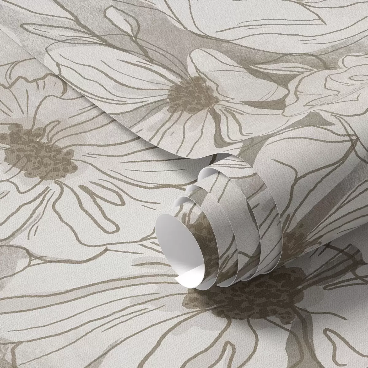 Papel tapiz Flores lineales en una paleta monocromática de tonos beige y gris Nr. a00636