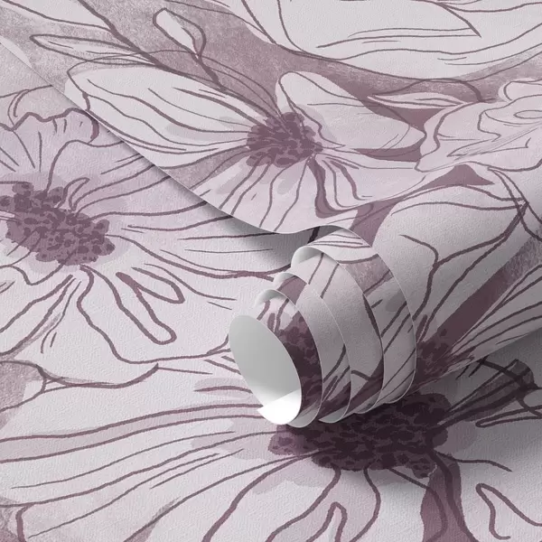 Papel tapiz Flores lineales en una fresca paleta de colores lila y rosa Nr. a00636v1