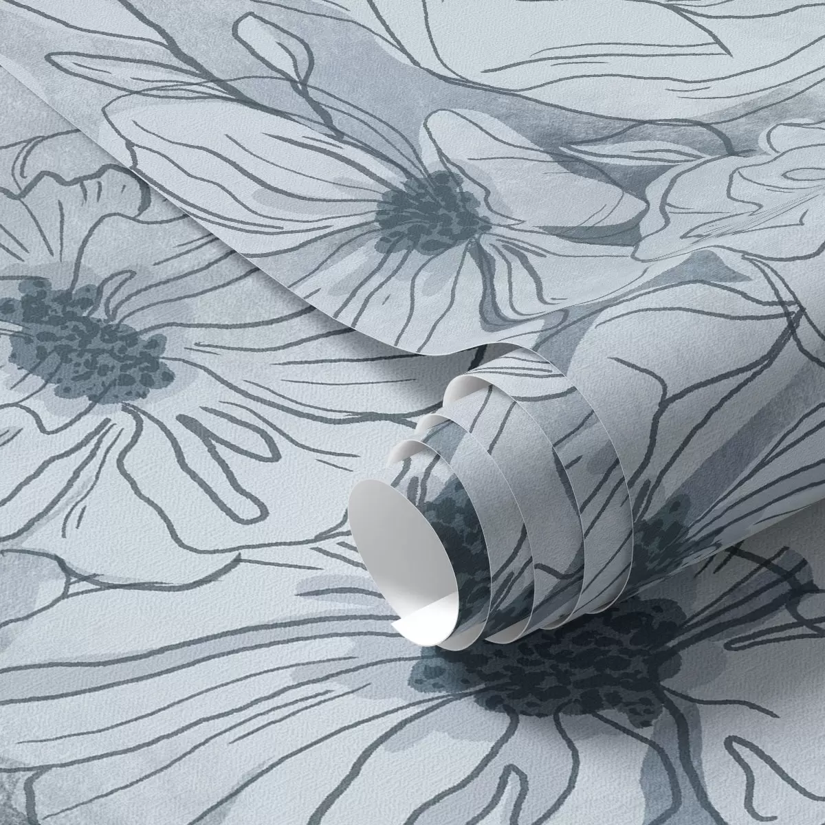 Papel tapiz Flores lineales en una fresca paleta de colores gris azulados Nr. a00636v2