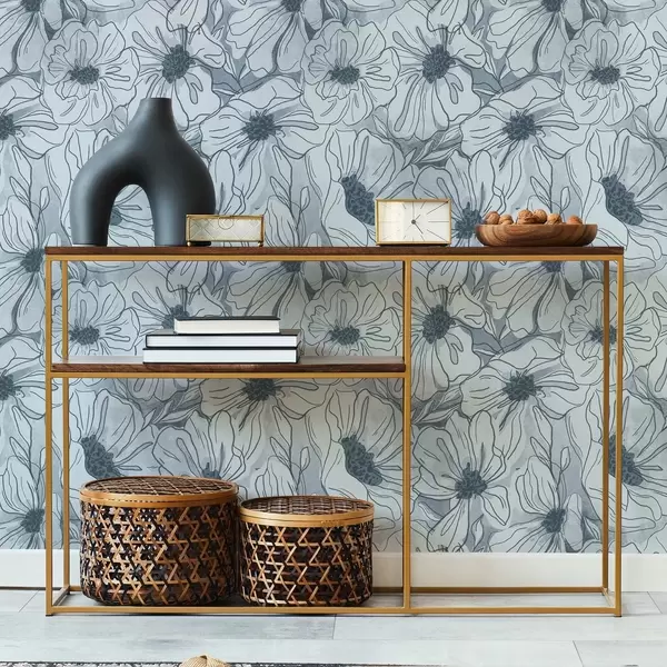 Papel tapiz Flores lineales en una fresca paleta de colores gris azulados Nr. a00636v2