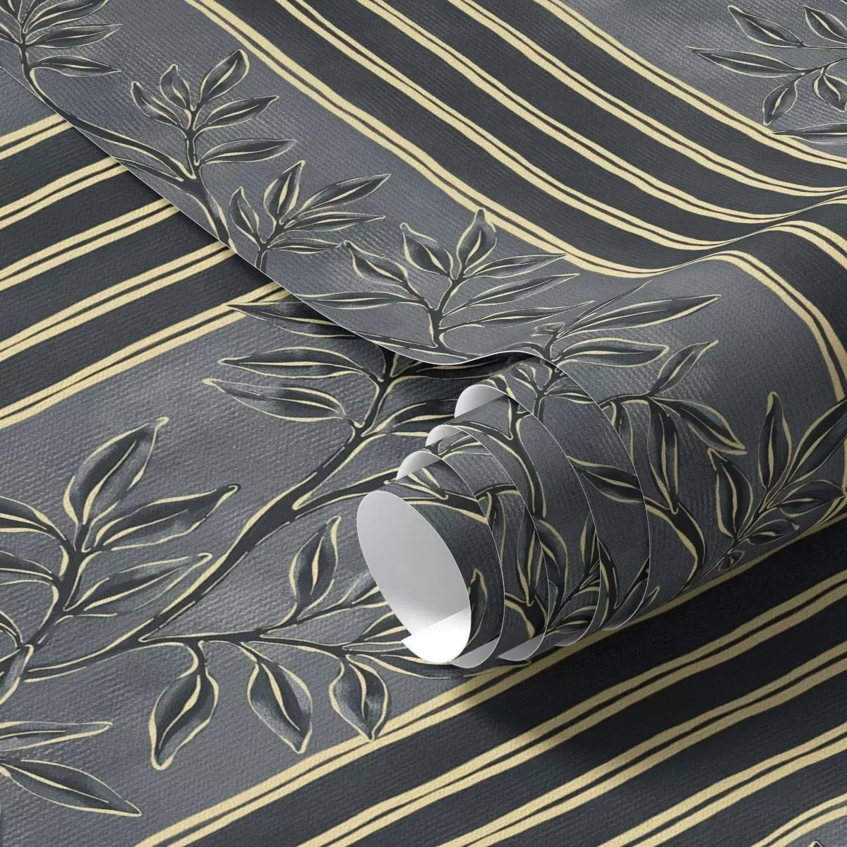 Papel tapiz Rayas verticales con motivos botánicos en tonos oscuros Nr. a00648