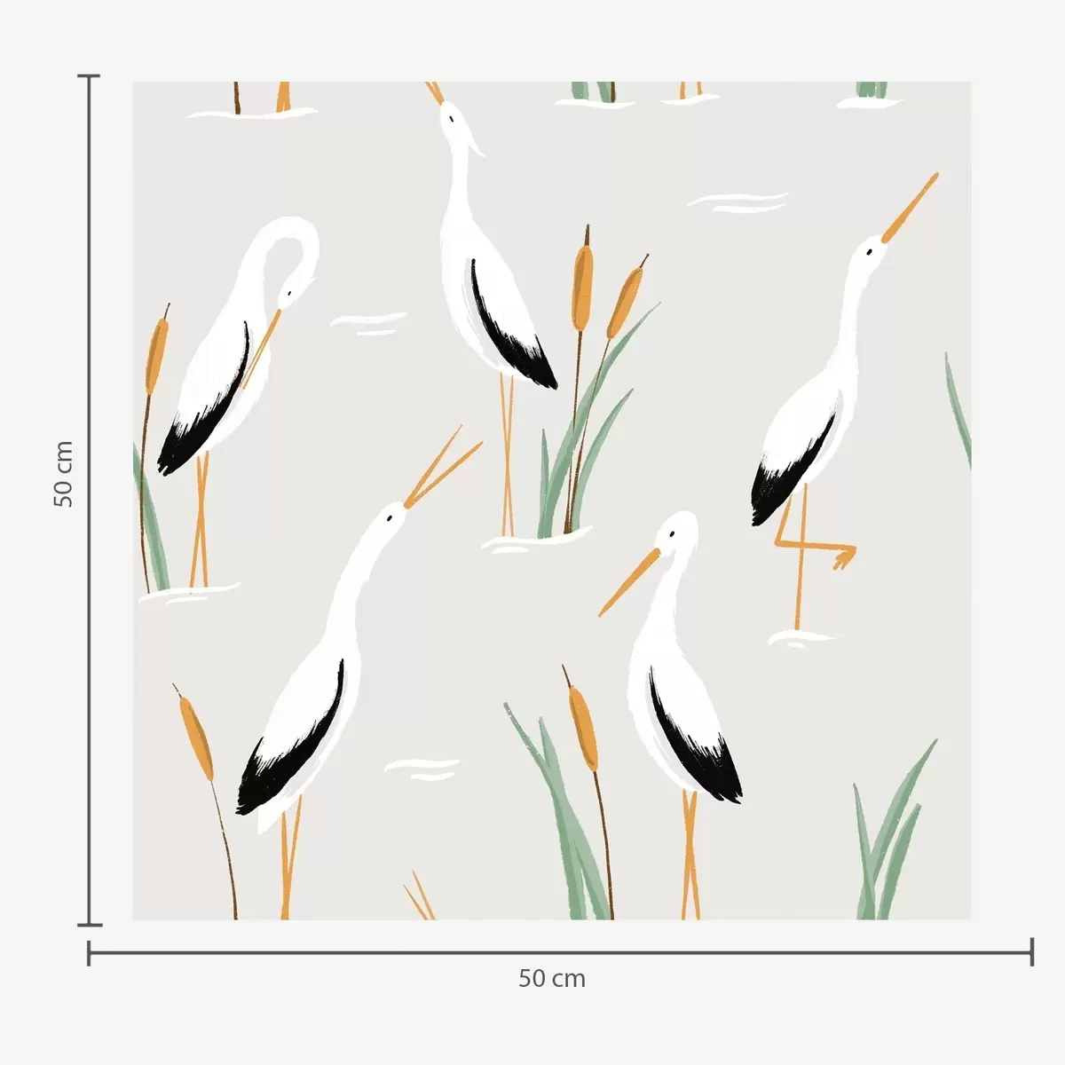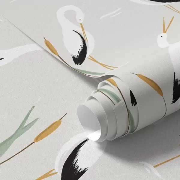 Papel tapiz Garzas entre juncos sobre un fondo gris claro Nr. a00650