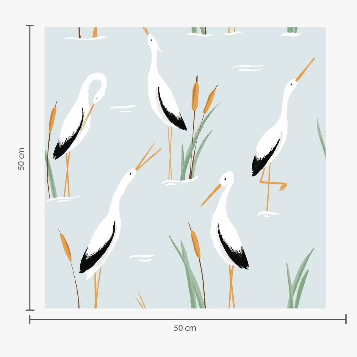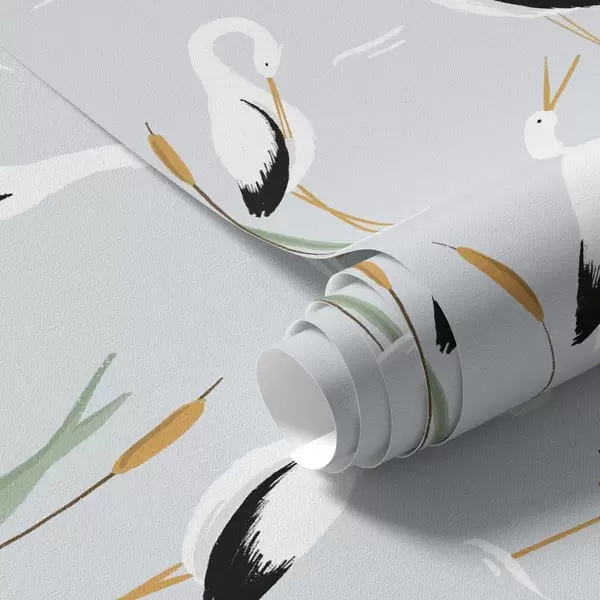 Papel tapiz Garzas entre juncos sobre un suave fondo azul Nr. a00650v1