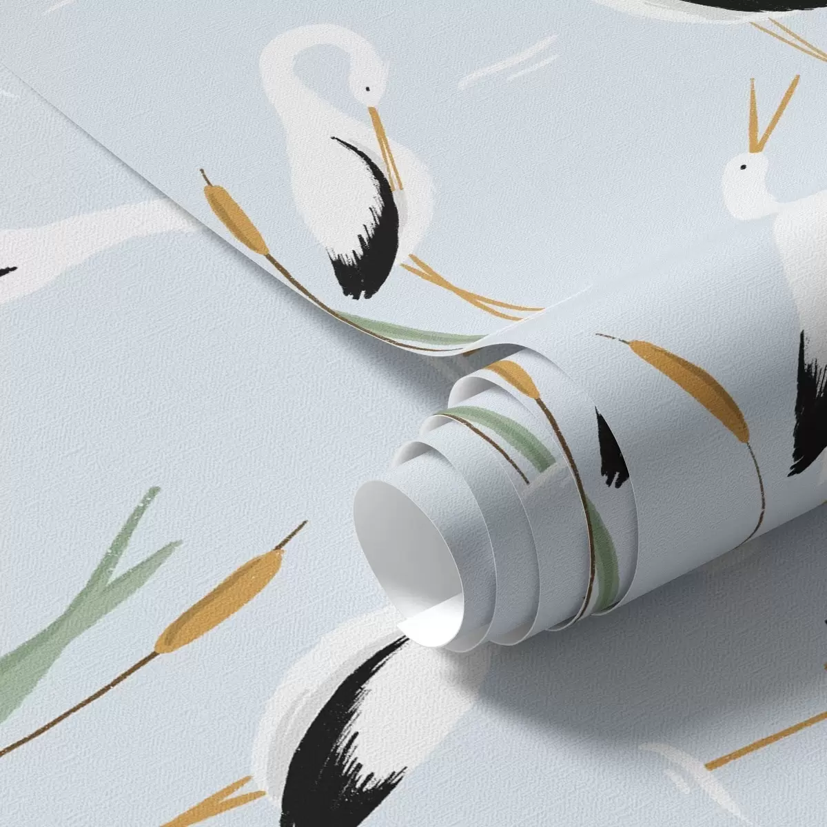 Papel tapiz Garzas entre juncos sobre un suave fondo azul Nr. a00650v3