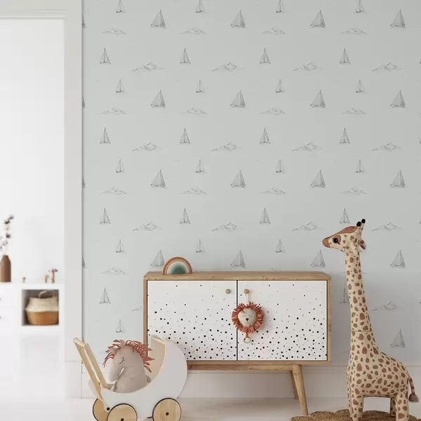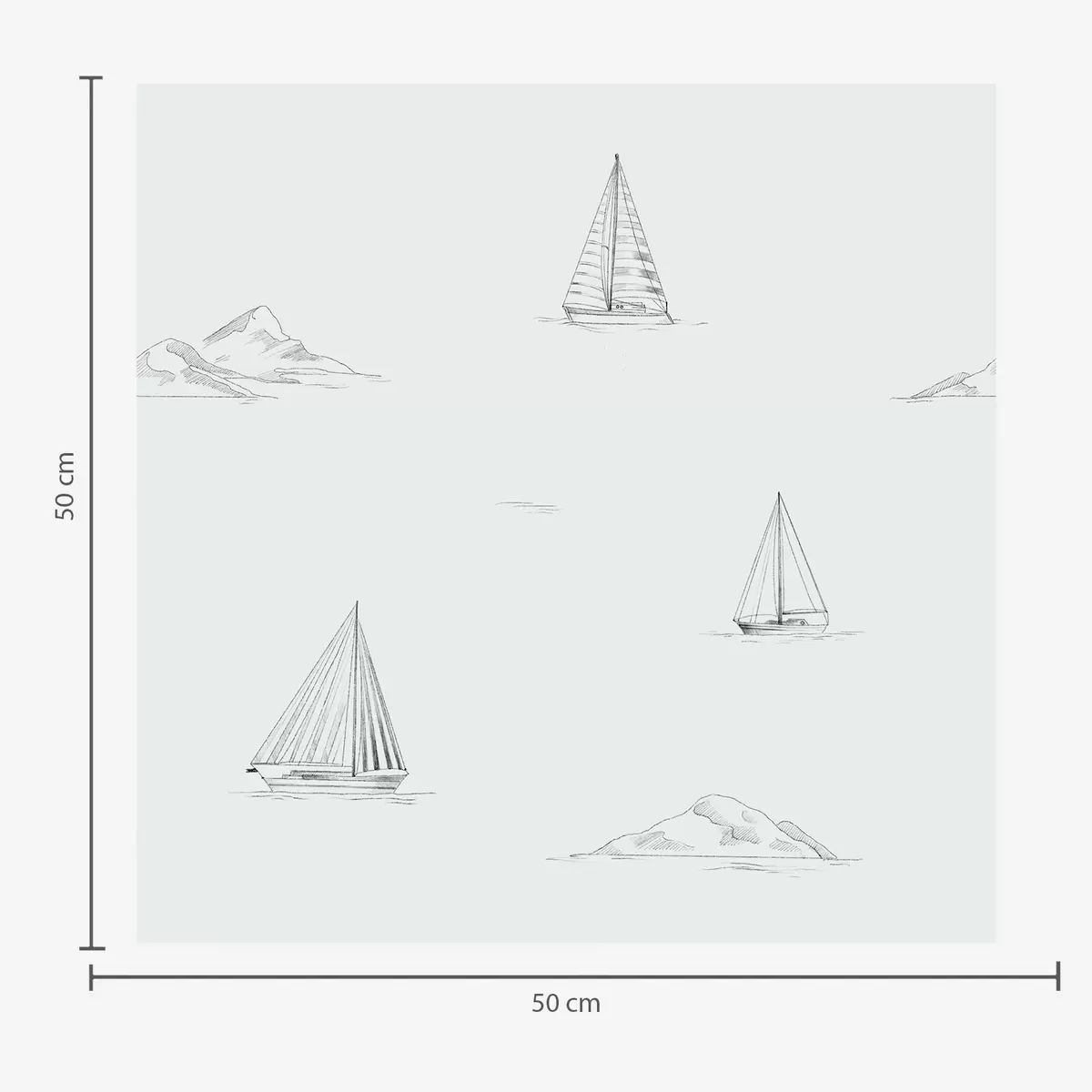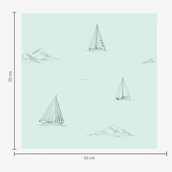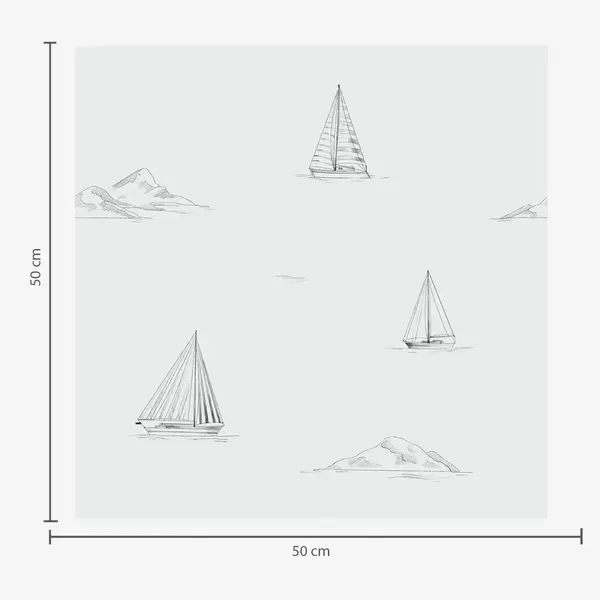 Papel tapiz Dibuja yates e islas, con un fondo azul grisáceo fresco Nr. a00654