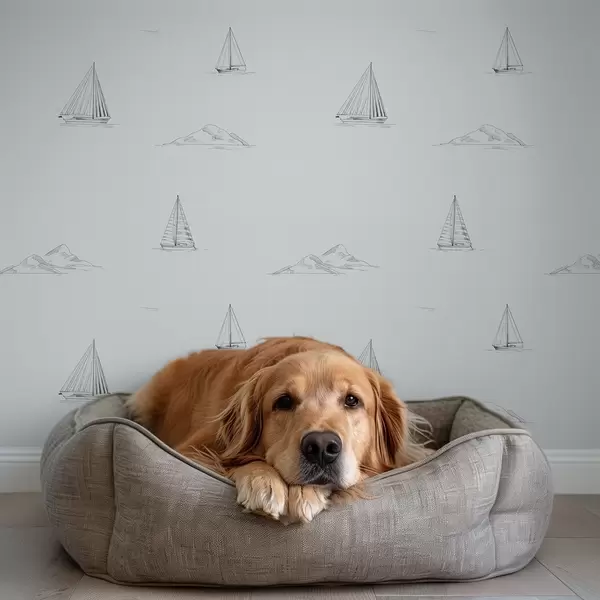 Papel tapiz Dibuja yates e islas, con un fondo azul grisáceo fresco Nr. a00654