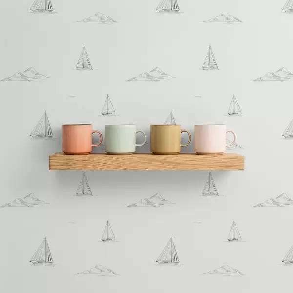 Papel tapiz Dibuja yates e islas, fondo claro. Nr. a00654v2