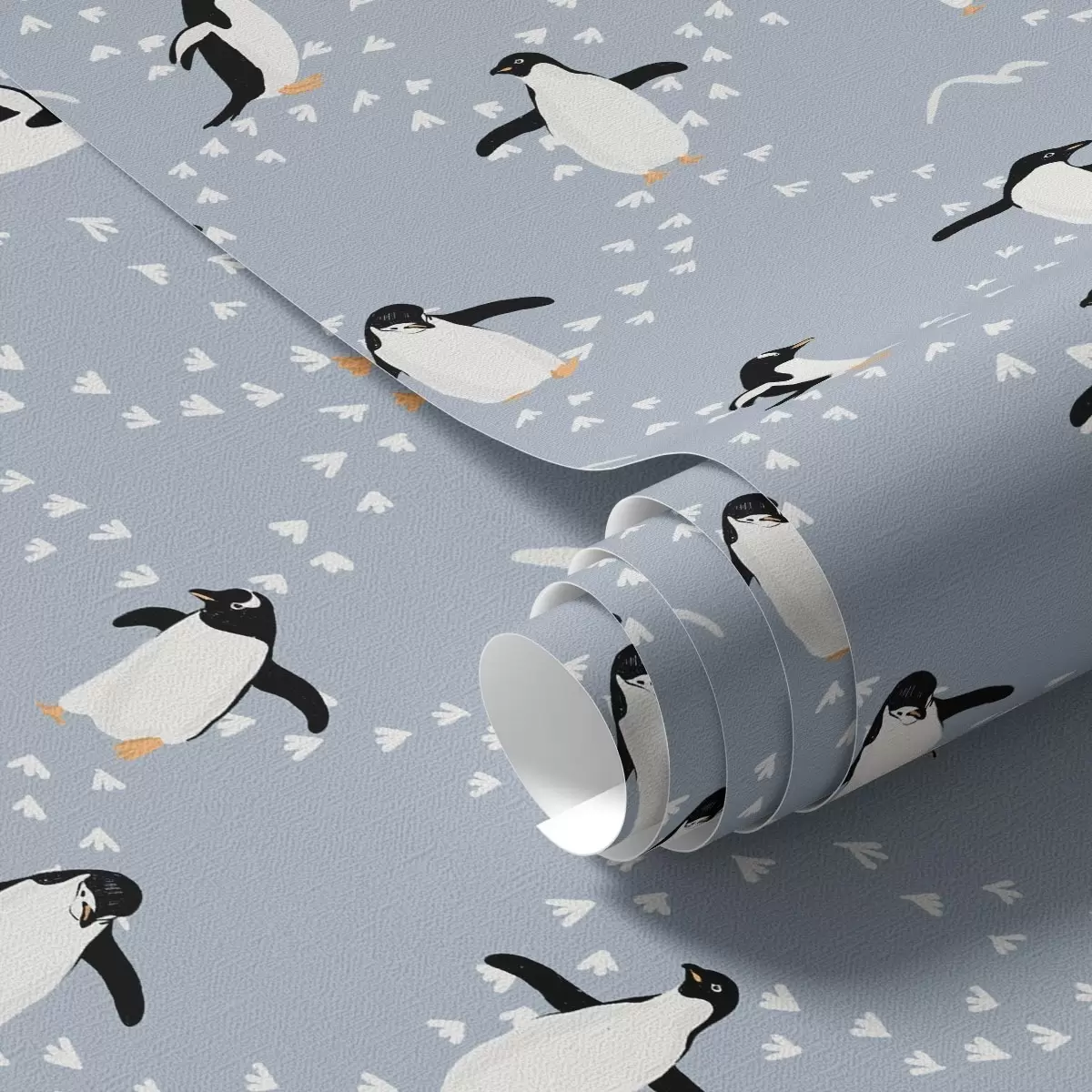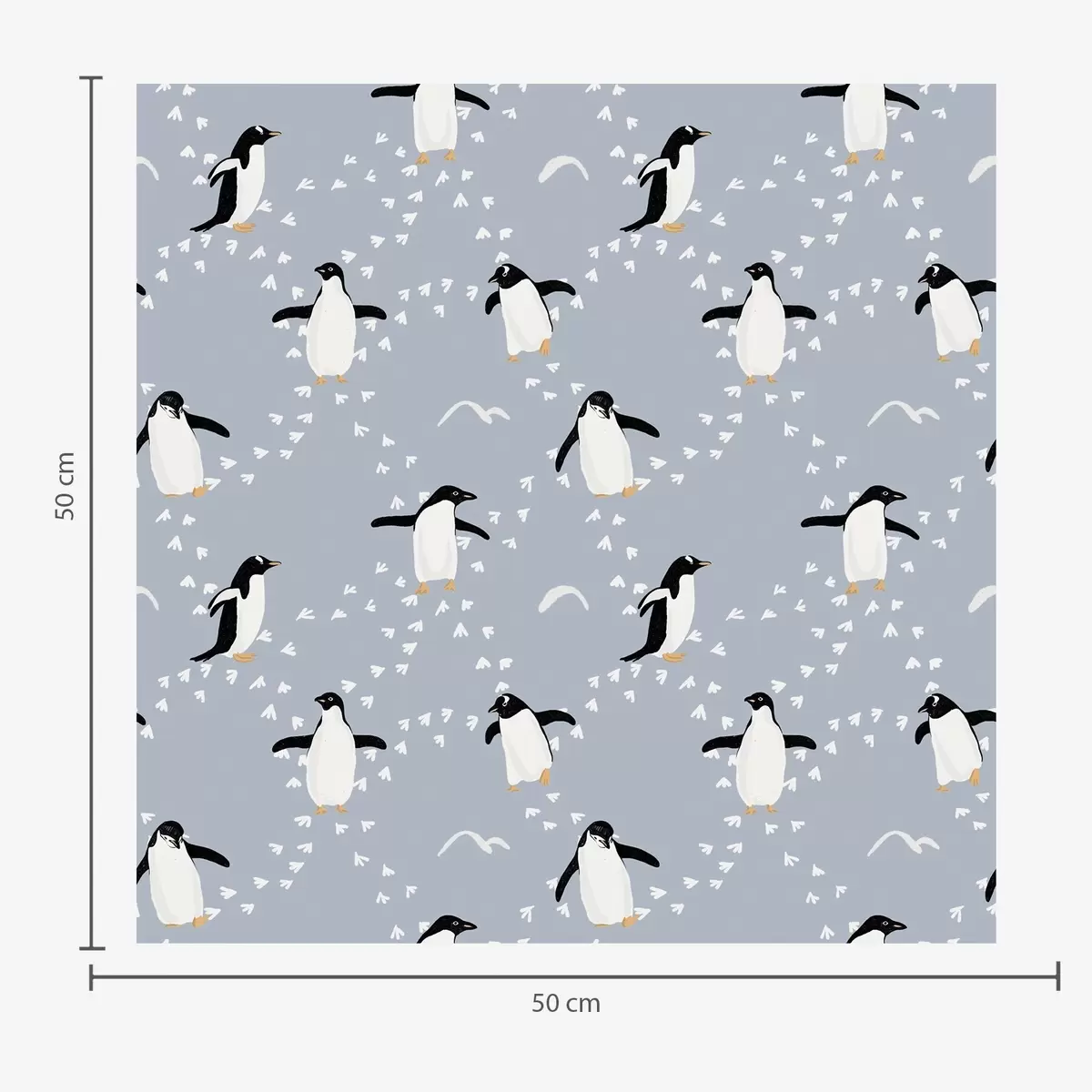 Papel tapiz Pingüinos sobre fondo gris azulado con huellas Nr. a00655