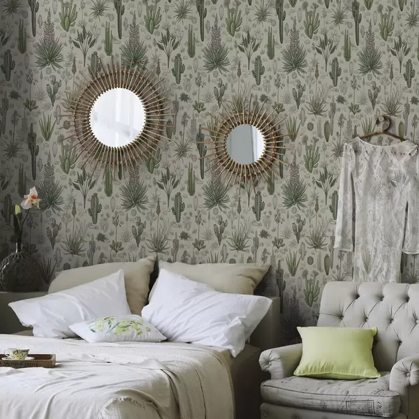 Papel tapiz Cactus y suculentas sobre un fondo cálido, estampado detallado Nr. a00666