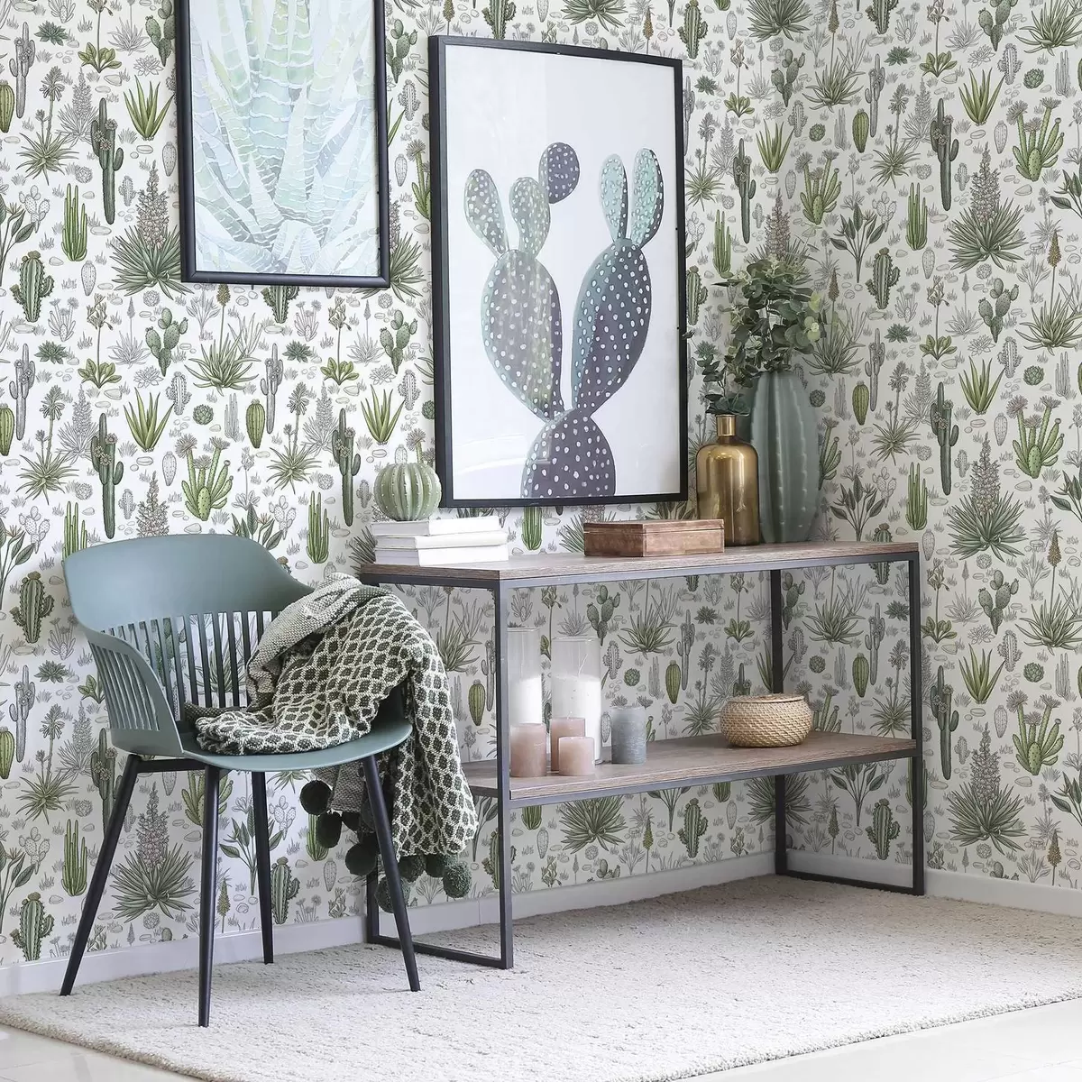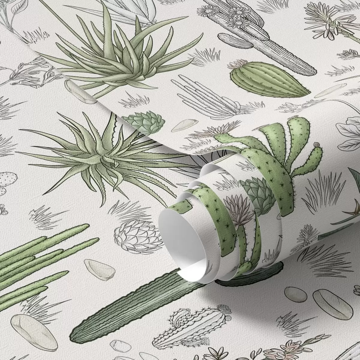 Papel tapiz Cactus y suculentas sobre fondo claro, estilo lineal Nr. a00666v1