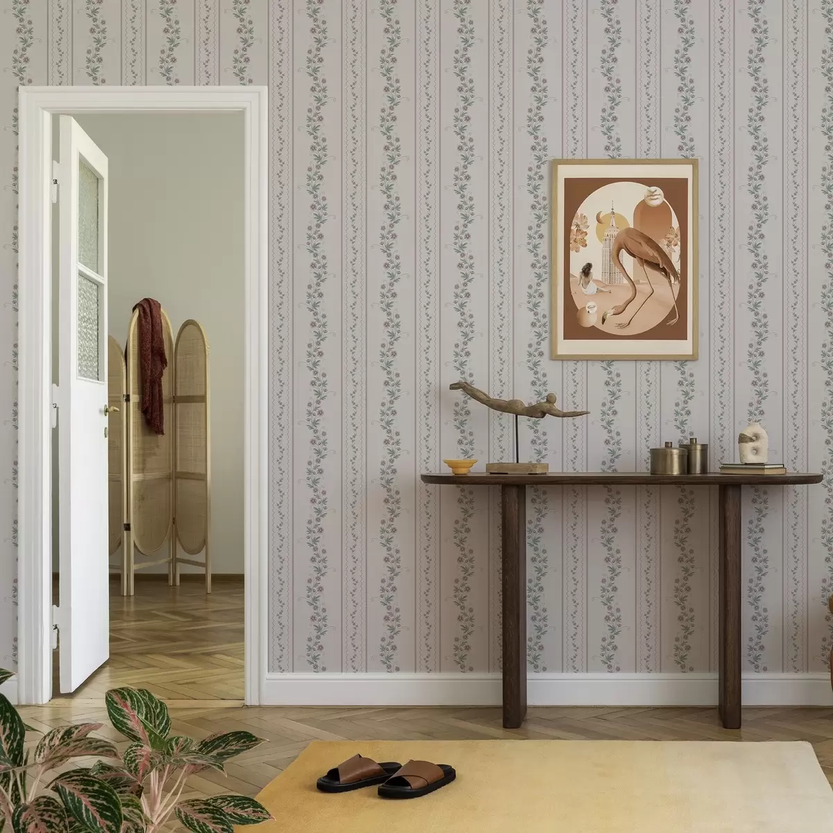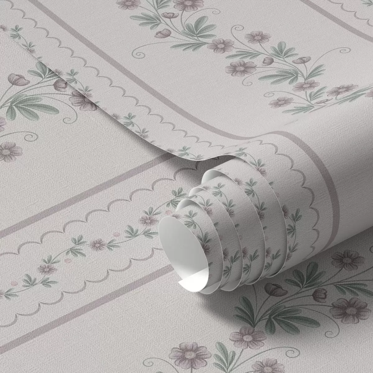 Papel tapiz Delicadas rayas con flores de lavanda, estilo vintage Nr. a00671