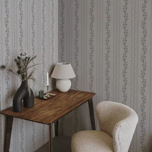 Papel tapiz Delicadas rayas con flores de lavanda, estilo vintage Nr. a00671