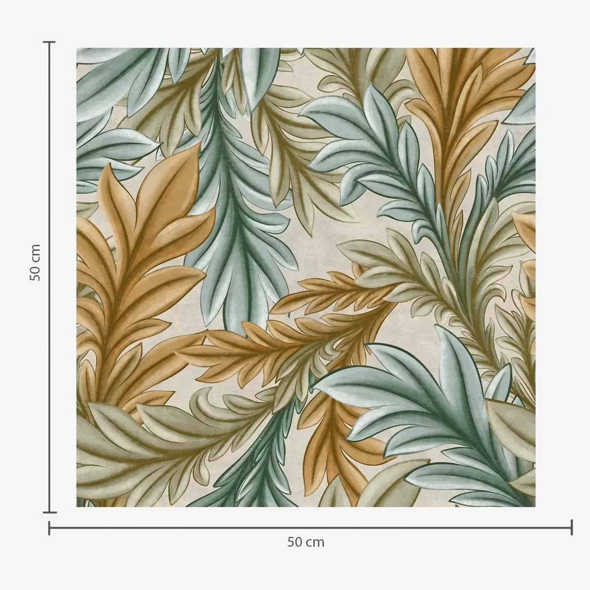 Papel tapiz Follaje decorativo en una cálida paleta de colores ocres y verdes Nr. a00673