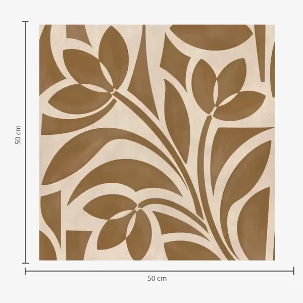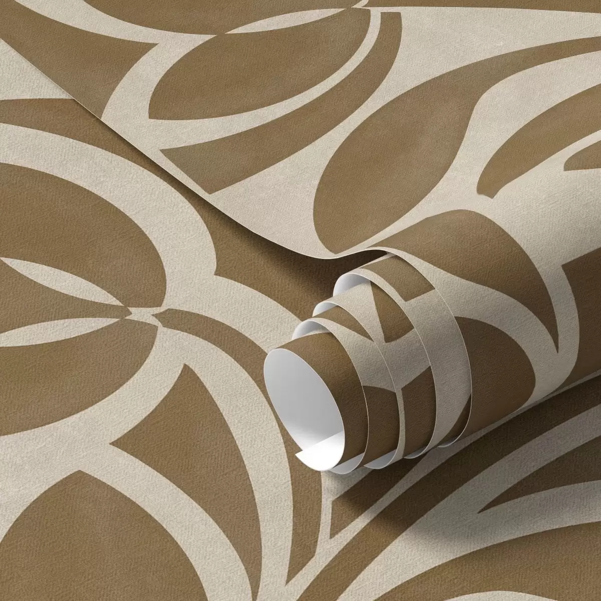 Papel tapiz Siluetas geométricas de hojas, marrón caramelo sobre beige Nr. a00679