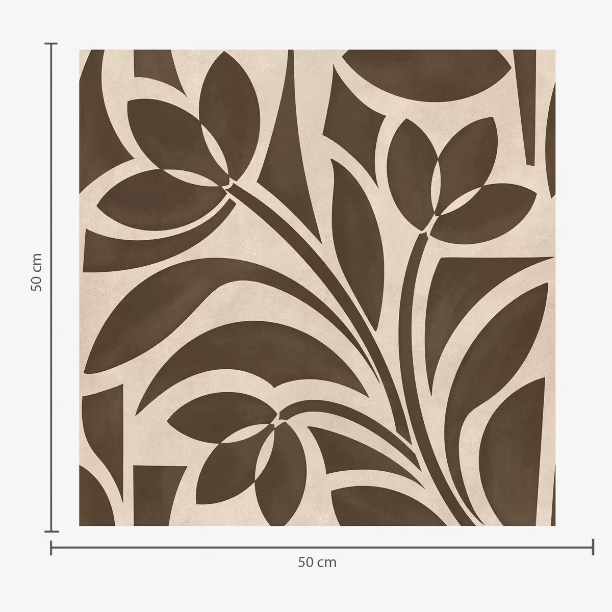 Papel tapiz Siluetas geométricas de hojas, marrón oscuro sobre beige Nr. a00679v1