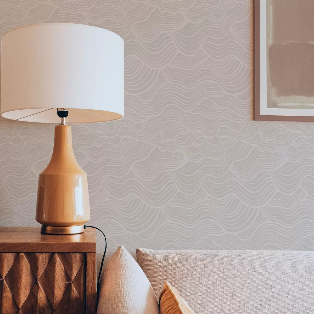 Papel tapiz Líneas onduladas tono sobre tono en beige cálido Nr. a00681v1