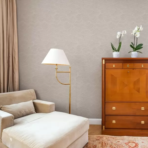 Papel tapiz Líneas onduladas tono sobre tono en beige cálido Nr. a00681v1