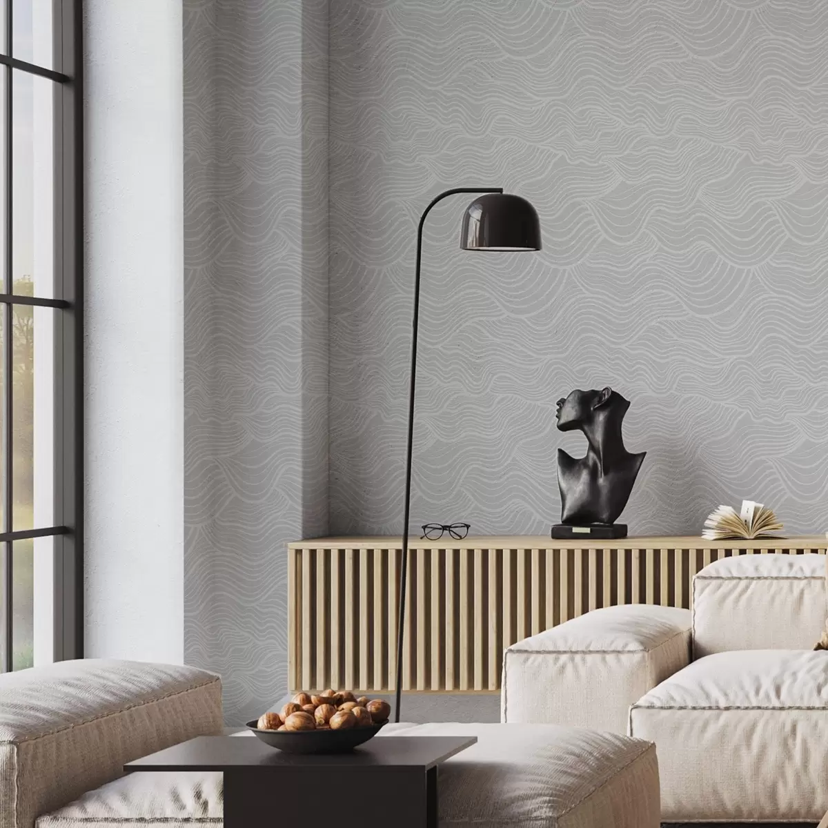 Papel tapiz Adorno ondulado: líneas claras sobre fondo gris Nr. a00681v2