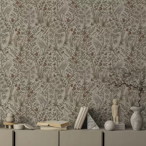 Papel tapiz Aves entre granados en un entorno natural Nr. a00699